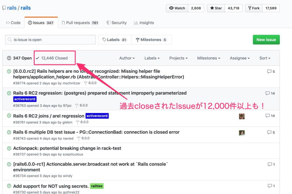 上記画像のようにrailsだけでも過去closeされたIssueが12,000件以上もあります。